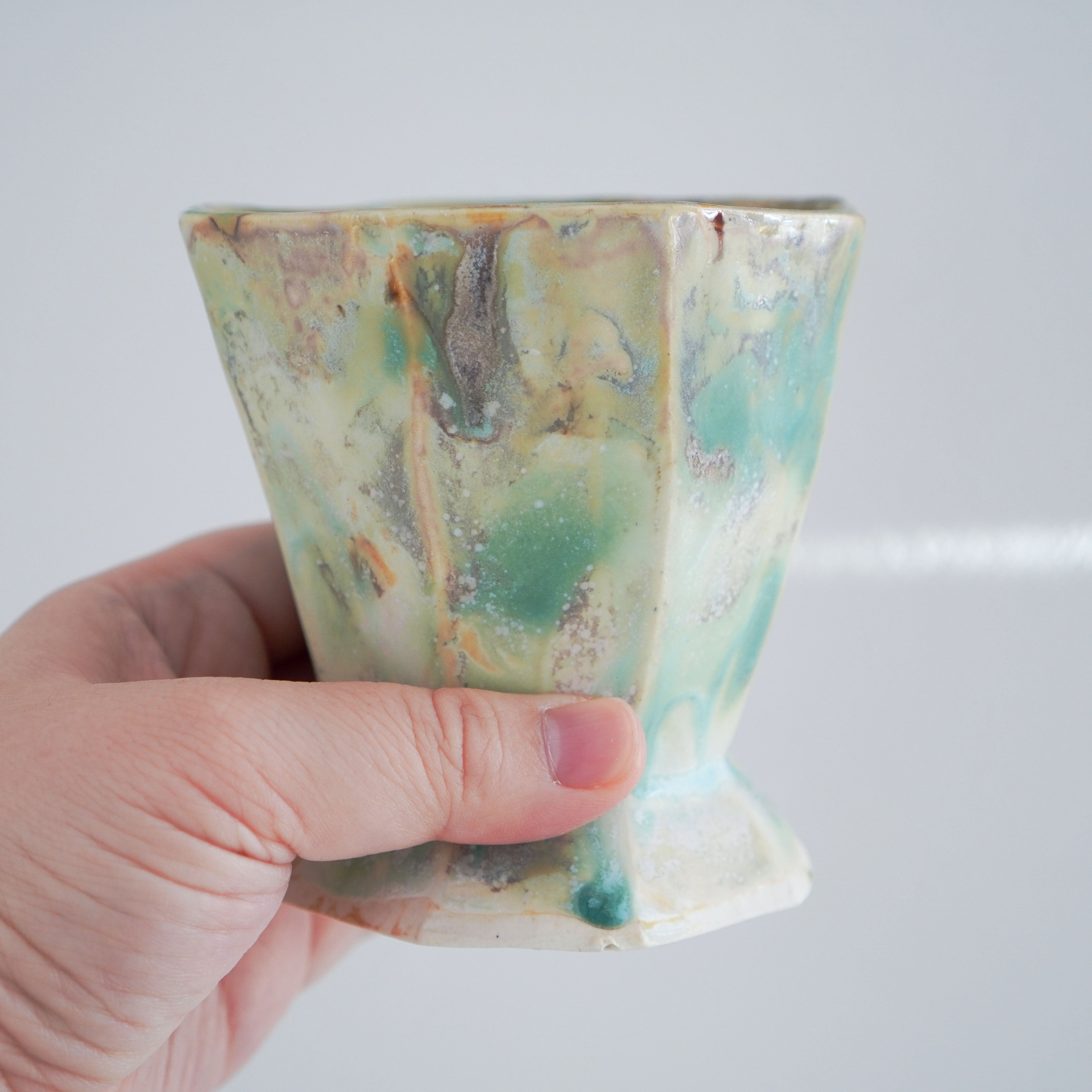 釉薬の風合いが何とも素敵な八角マグ。