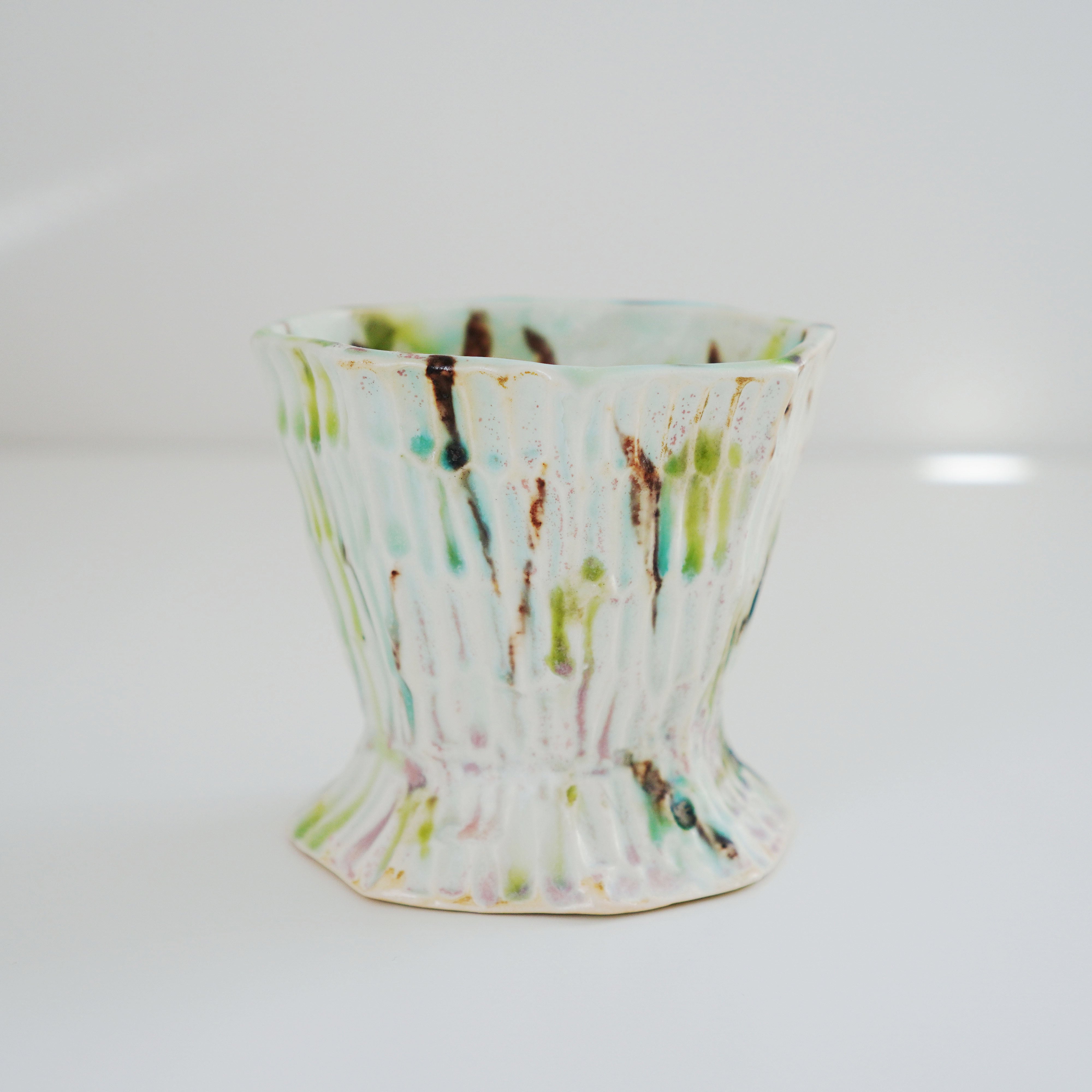 夏時期は、この八角カップに冷たい飲み物を